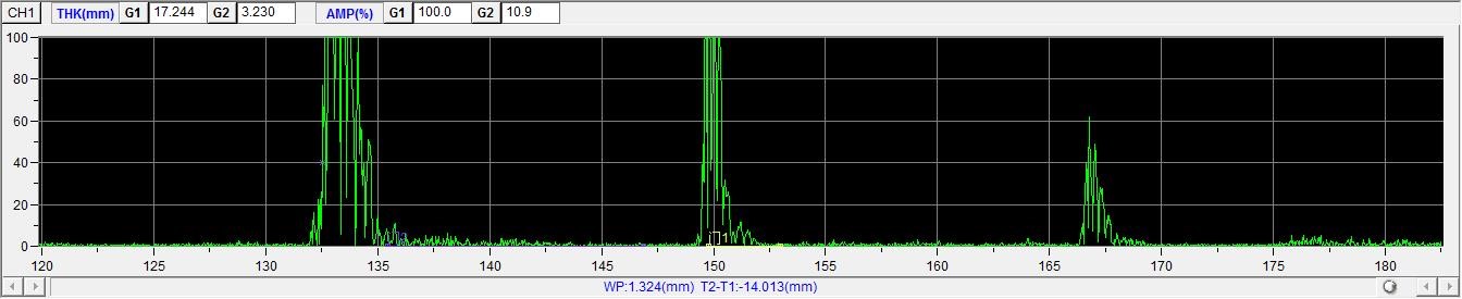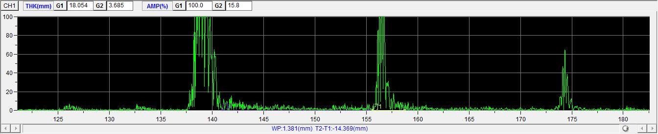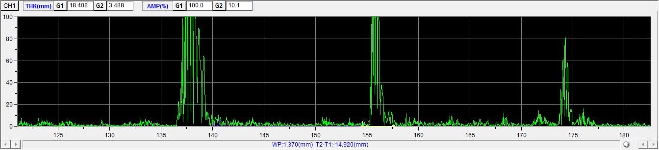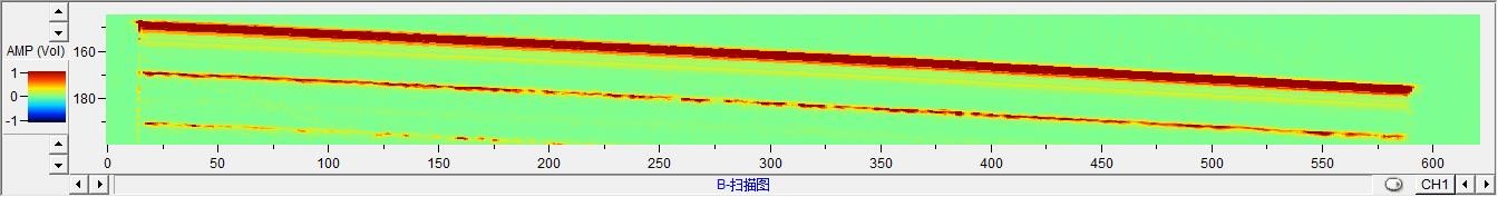 傳感器是10MHz ,焦距爲1.5in的聚焦探頭。