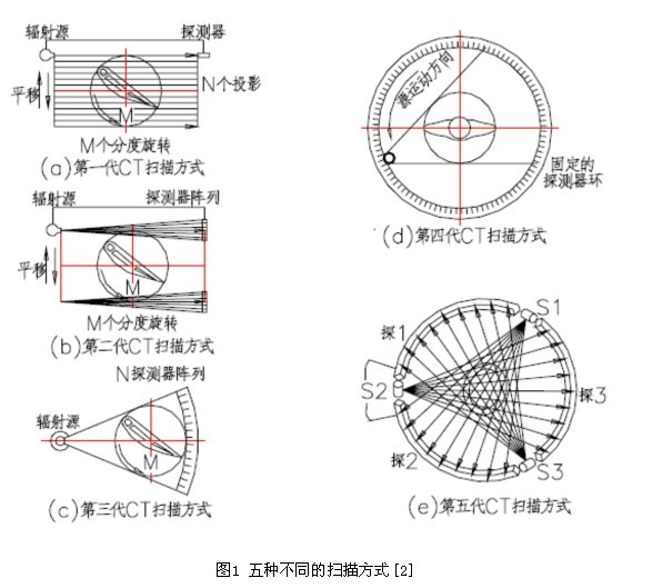 按掃描獲取數據方式的不同,CT技術已發(fā)展經(jīng)曆了五個階段,如圖1所示。