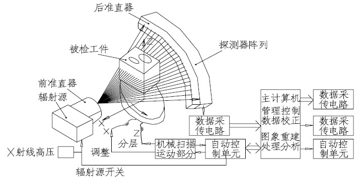 一個工業CT系統至少應當包括射線源,輻射探測器,樣(yàng)品掃描系統,計算機系統(硬件和軟件)等。