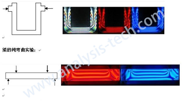 實驗示意及應用範圍: 利用應力雙折射性質,在工程上可以制成(chéng)各種(zhǒng)機械零件的透明塑料模型,然後(hòu)模拟零件的受力情況,觀察、分析偏振光幹涉的色彩和條紋分布,從而判斷零件内部的應力分布。