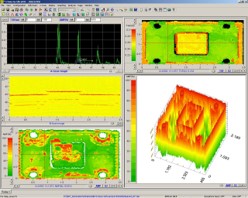超聲C掃描系統界面(miàn) 其檢測原理是基于超聲波在被(bèi)檢測工件中傳播特質,如超聲波在通過(guò)材料傳遞過(guò)程中能(néng)量會(huì)損失,在遇到聲阻抗不同的兩(liǎng)種(zhǒng)介質分界層會(huì)發(fā)生反射等特點來檢測材料内部缺陷的一種(zhǒng)方法。當超聲波束自超聲探頭穿至材料内部遇到缺陷與工件底部時(shí)候會(huì)發(fā)生反射波,水浸超聲掃描顯微鏡通過(guò)收集這(zhè)些超聲波,會(huì)在電腦屏幕上形成(chéng)脈沖波形,找到缺陷波形進(jìn)行圖像化分析處理,檢測結果爲材料内部截面(miàn)圖像。